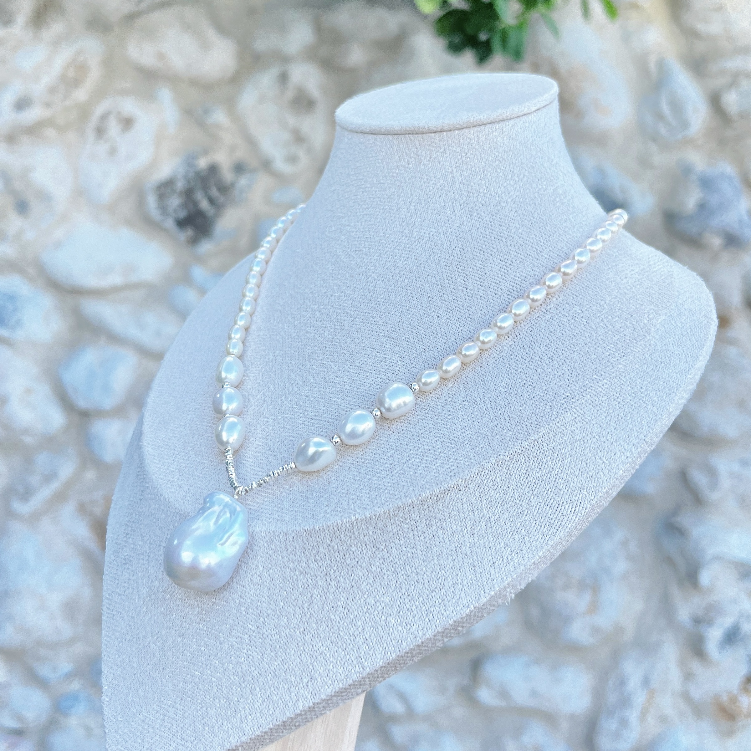 The Ethereal Baroque Pearl Necklace embodies timeless sophistication with a touch of modern artistry. Handcrafted from natural freshwater pearls, this piece features a stunning baroque pearl pendant—each one a one-of-a-kind creation of nature, celebrated for its organic shape and luminous glow.