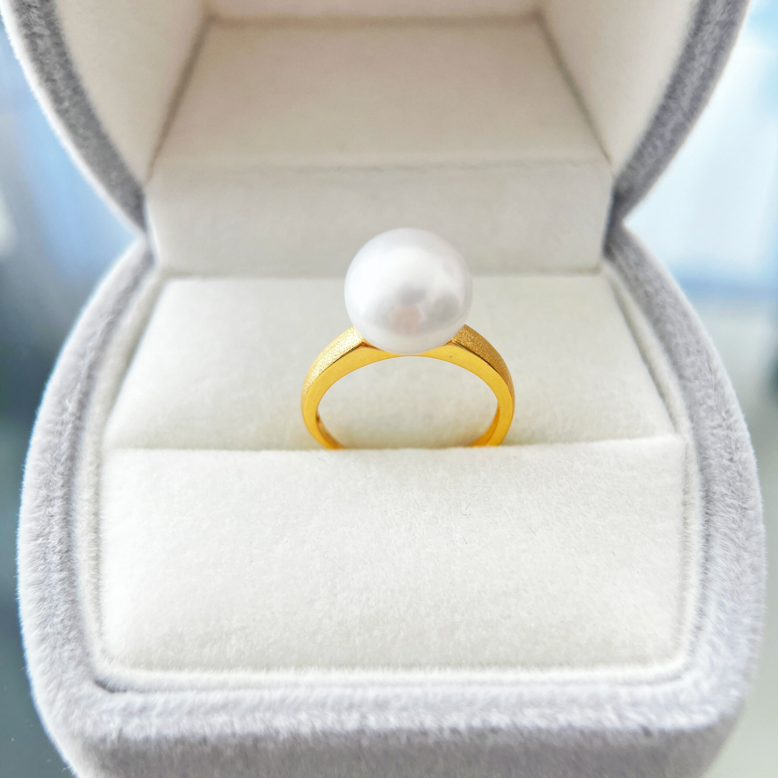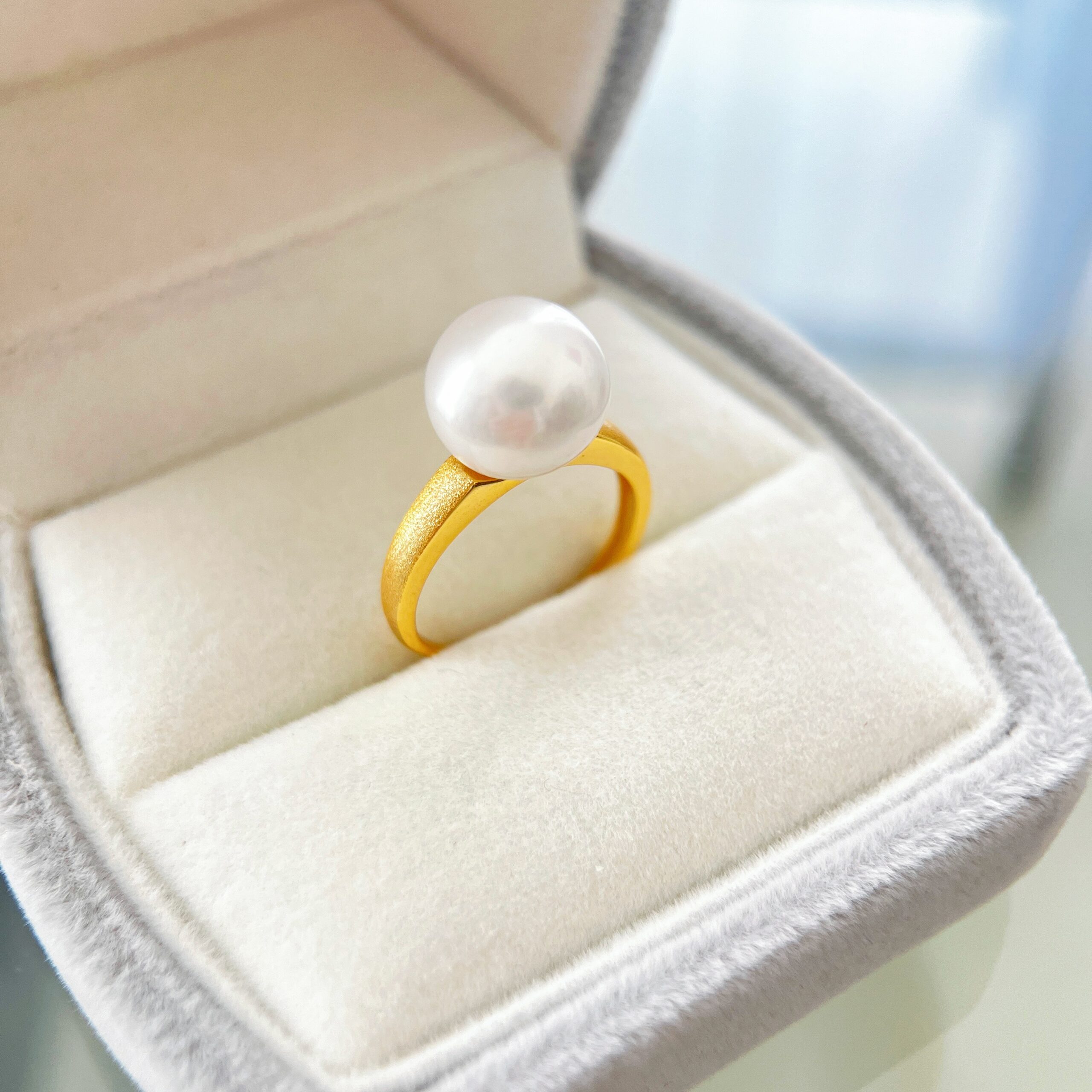 The Radiant Aura Pearl Ring showcases timeless elegance with a warm, luminous finish. At its center rests a 10–11mm natural freshwater pearl, perfectly round and selected for its exceptional sheen. The pearl is set atop a smooth, polished S925 sterling silver band in a rich gold tone, creating a striking yet refined contrast.