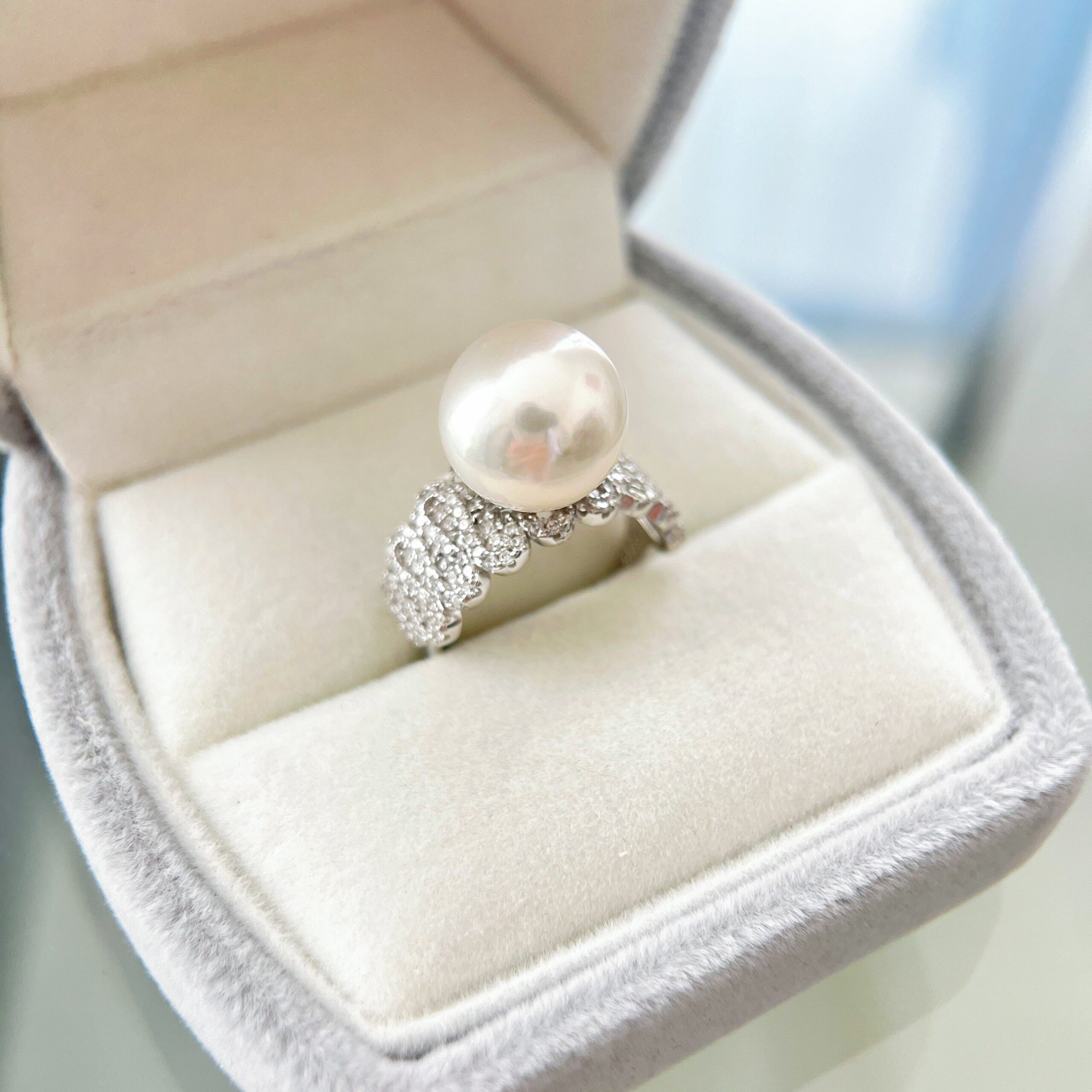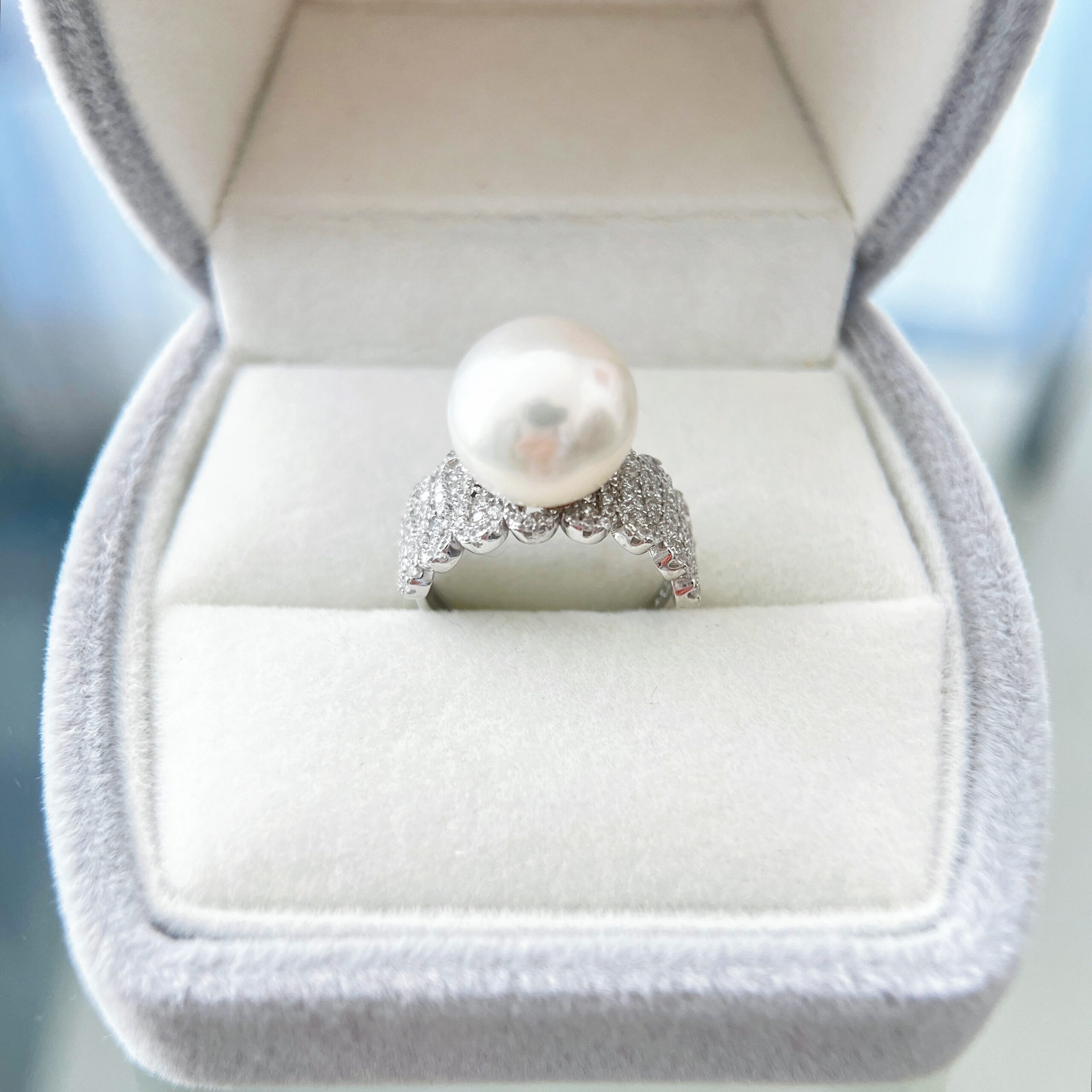 The Seraphine Pearl Ring is a masterpiece of refined elegance and timeless allure. Featuring a luminous 11–12mm natural freshwater pearl, perfectly round and hand-selected for its exceptional luster, this piece is a true embodiment of classic sophistication. The pearl rests gracefully atop a finely crafted S925 sterling silver band, intricately adorned with pavé-set zircon stones that shimmer with delicate brilliance.