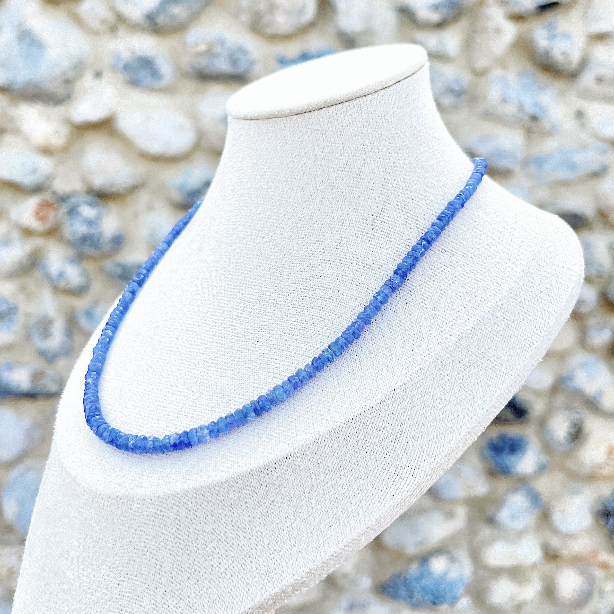 Each bead is hand-cut into a faceted rondelle, graduating from 2.9mm to a bold 4.9mm at the center. This slight taper creates a sophisticated silhouette that draws the eye and highlights the gemstone’s natural clarity. At 40cm, it rests gracefully at the hollow of the throat, making it a luminous addition to any jewelry curation.