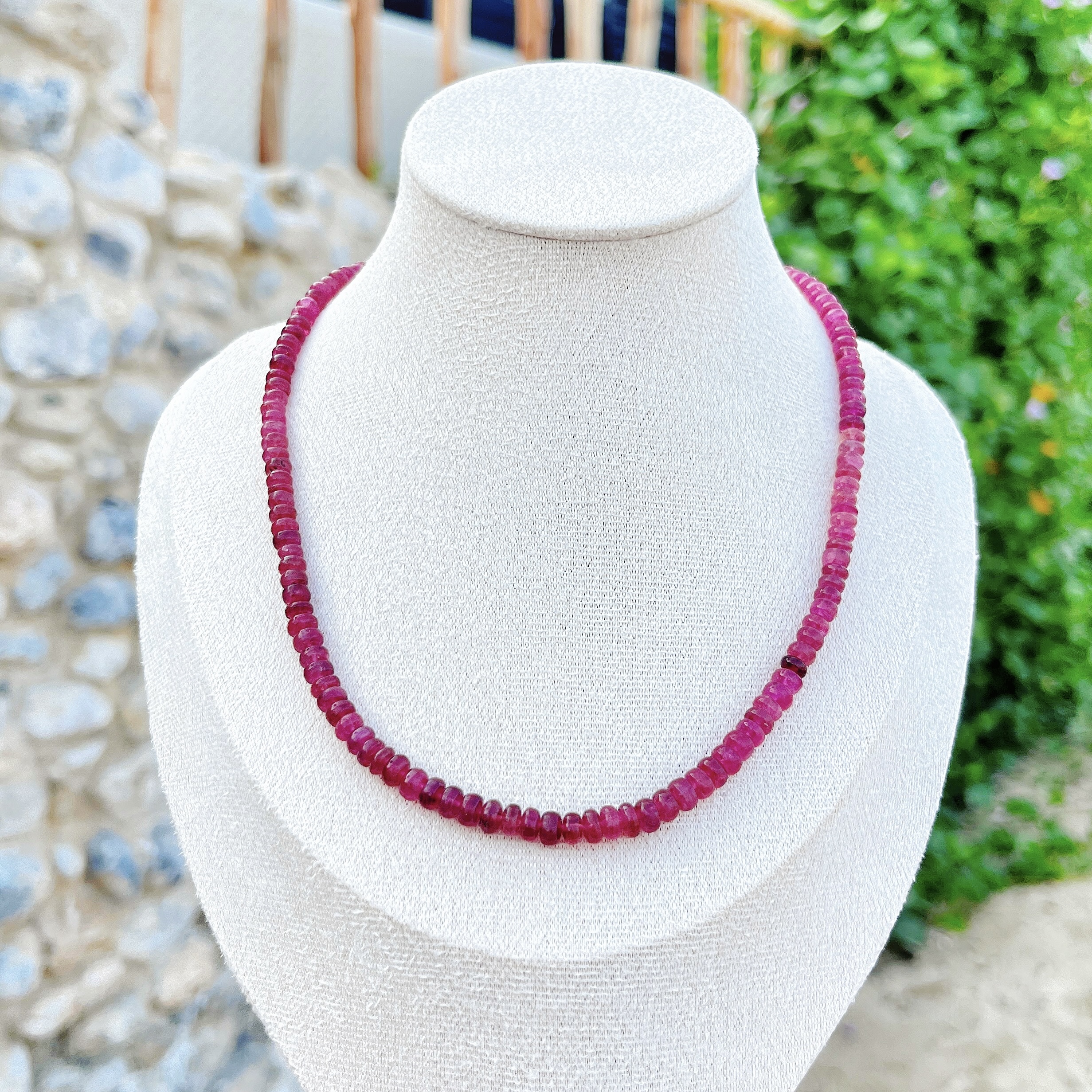 Capturing the essence of a hidden garden in full bloom, this necklace features premium Natural Tourmaline. Known for its incredible range of color, these beads showcase a mesmerizing transition of deep rose, forest green, and earthy berry tones.